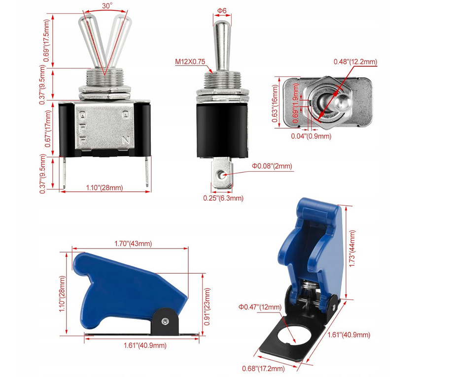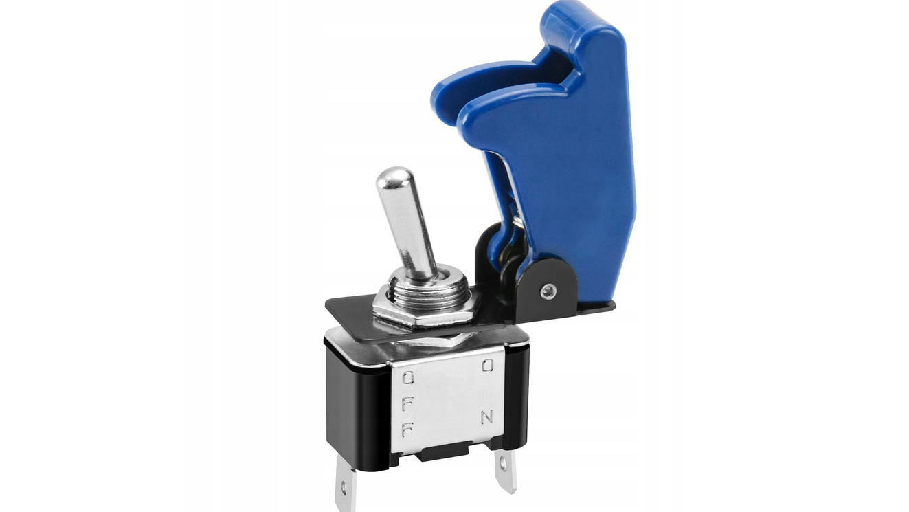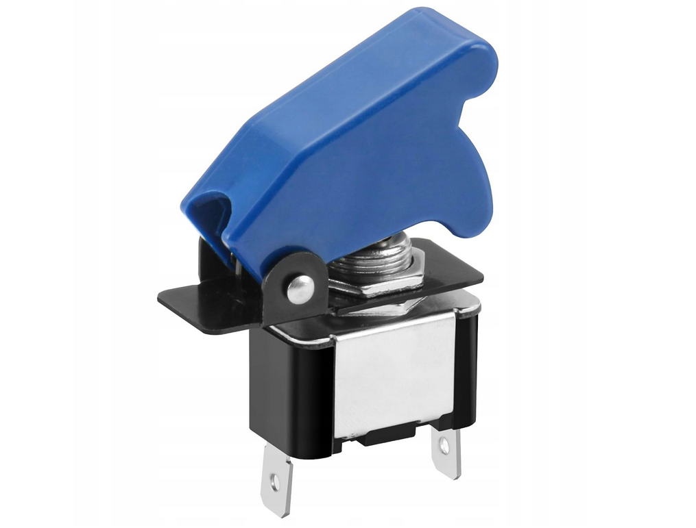 Metalowy przełącznik dźwigienkowy Flick Flip, 12V 20A, SPST, wł./wył., 2 pozycje, 2-biegunowy, z wodoodporną nasadką (niebieska nasadka)